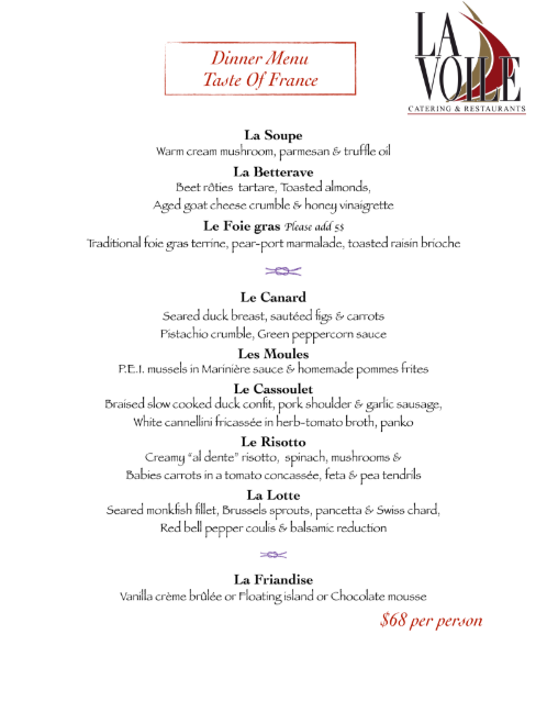 Dinner Prix Fixe Menu